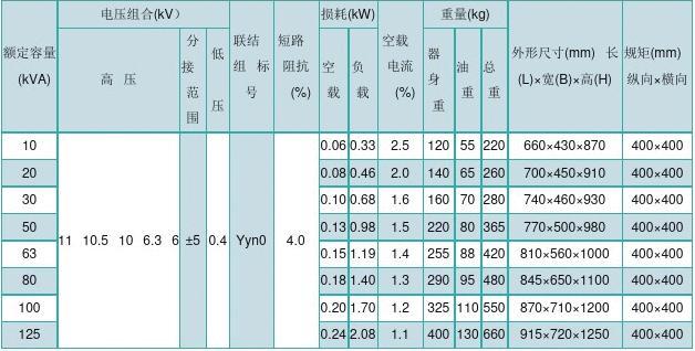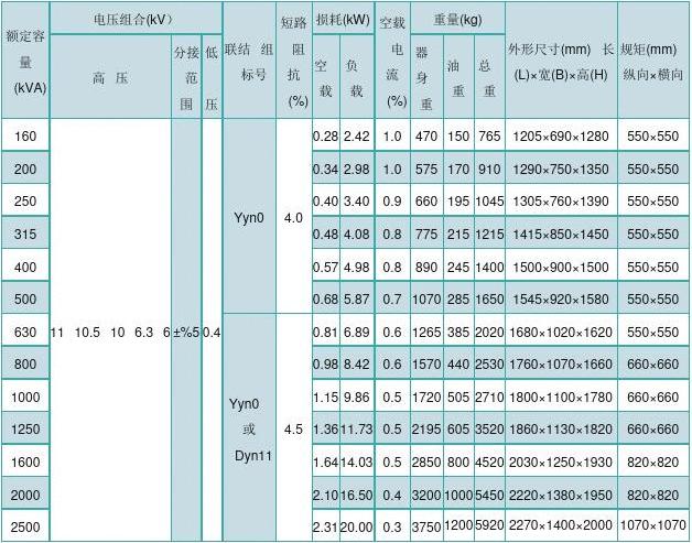 油浸式变压器型号及详细参数